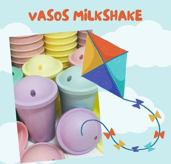 COMBO 50 Vasos Milkshake + 50 Botellas Plásticas 190 ml o 250 ml con Tapón Perforado Surtido + 50 Tubos Golosineros con Tapa