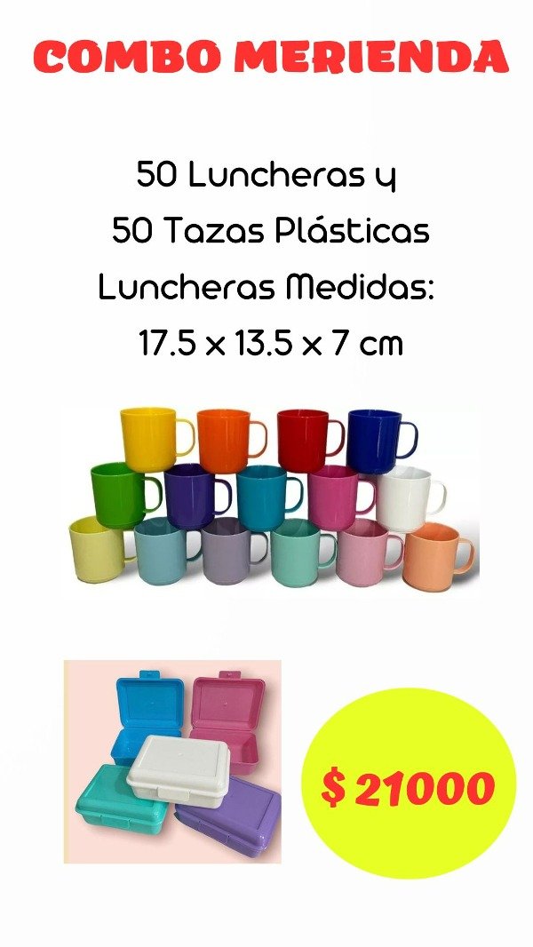 COMBO MERIENDA 50 Luncheras y 50 Tazas Plásticas