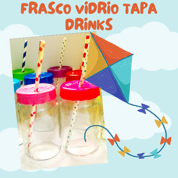 Frasco de vidrio 360 ml con tapa drinks para sorbetes