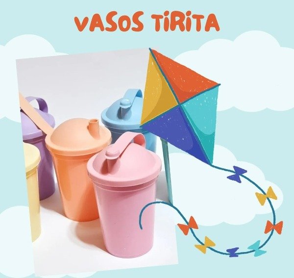 Vasos con Tapa y Sorbete x 50 u